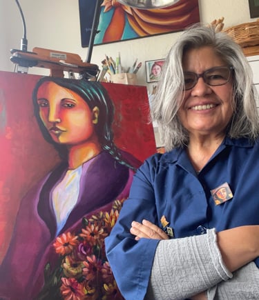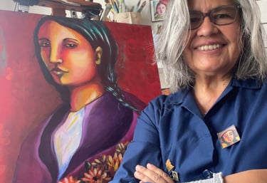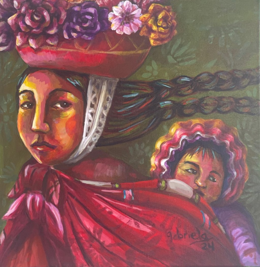 I was born in Lima, Peru, and at 19 I moved to California, carrying with me the memories, colors, and spirit of my homeland. Being far from Peru was both exciting and challenging, and painting became my way to stay connected — a bridge back to the Andes, to the women who inspire me, and to the traditions that live within me.